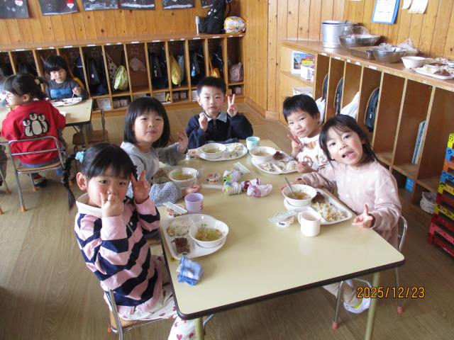 この日の給食は、各クラスにらいおんルームさんが数人ずつ入って一緒に食事を楽しみました♪