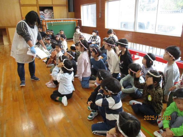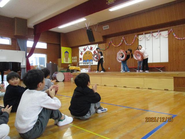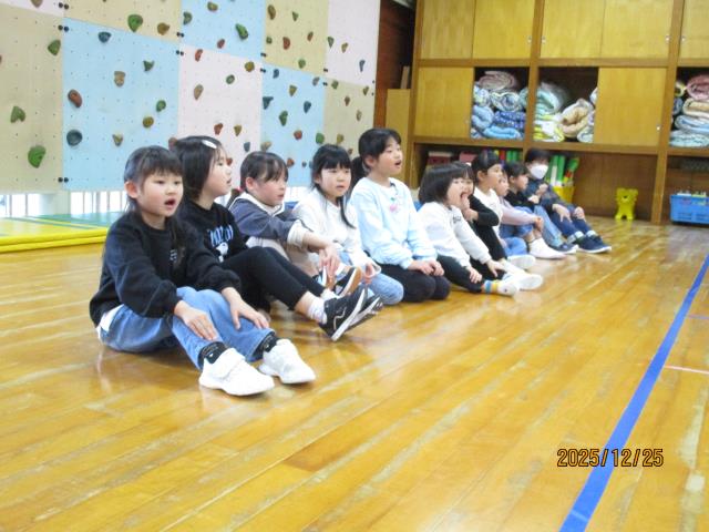 25日(木)、年長児を対象に1年生との交流会がありました。コロナ禍で中止になっていましたがこの度再開しました。久しぶりに会う1年生のお友達は元気がよく、普段元気いっぱいのらいおんルームさんも少し圧倒されているようでした。最初にらいおんルームさんがドーナツの踊りを披露してくれて、1年生は「上手だったよ。」「かわいかったよ。」と感想を話してくれました。そして、混合チームをつくり、オセロゲームをして盛り上がりました。みんな全力で頑張っていました。1年生は久々のオセロゲームで懐かしそうにしていました。らいおんルームさんは初めてのオセロゲームだったようですが、すぐにルールを理解し、楽しんでいました。その後、1年生への質問タイム!「小学校でどんなお勉強をいていますか?」「お昼寝はありますか?」「冬休みは何をして過ごしていますか?」など、疑問に思っていることを聞いていました。1年生から小学校のことを色々と聞いて、小学校への期待が膨らんだようです。来年は、1年生になったらいおんルームさんに会えるのを楽しみにしています。